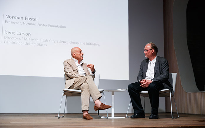 «Cuando hablamos de repensar las ciudades debemos tener en cuenta algo tan sencillo como que en un alto porcentaje del mundo hay quienes no tienen ni para darle a un interruptor y obtener luz. Los espacios del futuro tienen que ser también solidarios y no solo pensar en lo estético y en lo eficiente», aseguró Foster. Acompañado de Kent Larson, científico del MIT Media Lab, el Pritzker analizó también algunos de los factores que están cambiando la forma de entender las ciudades, como la movilidad. «¿Alguien se ha planteado que el espacio que ocupa un coche aparcado podría utilizarse para generar energía sostenible?».