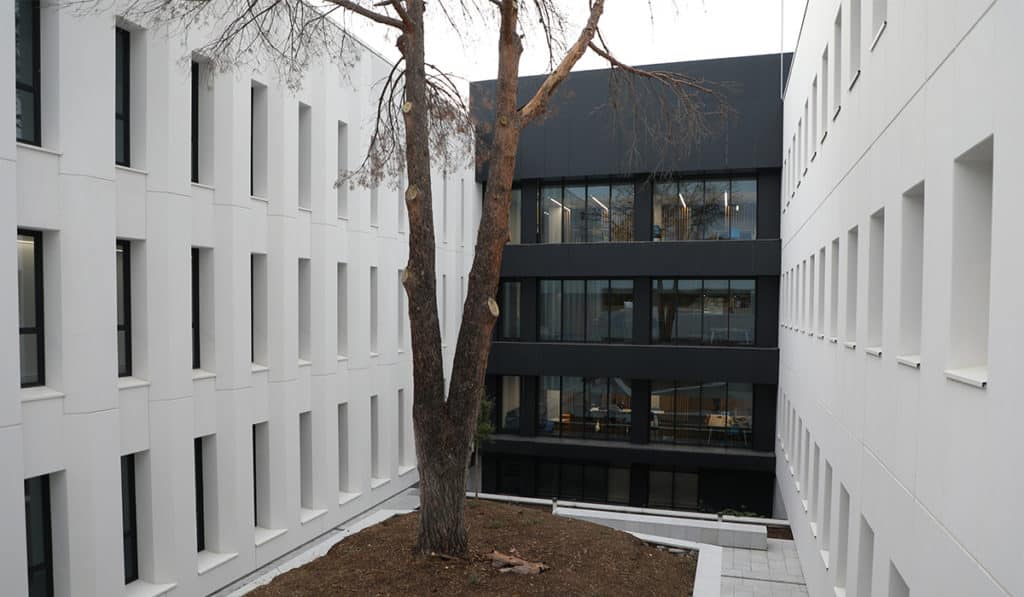 Aunque el blanco que predomina en el exterior del edificio de Juan XXIII es “un color habitual en todos nuestros campus”, reconoce Llano, en este esconde otro motivo más. “Tiene una función clara, que es ayudar a mantener la temperatura del edificio, evitando la atracción de calor y por tanto, ayudando a un consumo energético más sostenible”.
